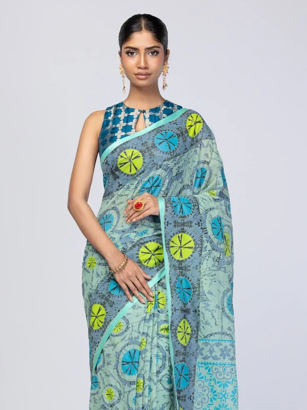 Sage Green Printed Cotton Saree