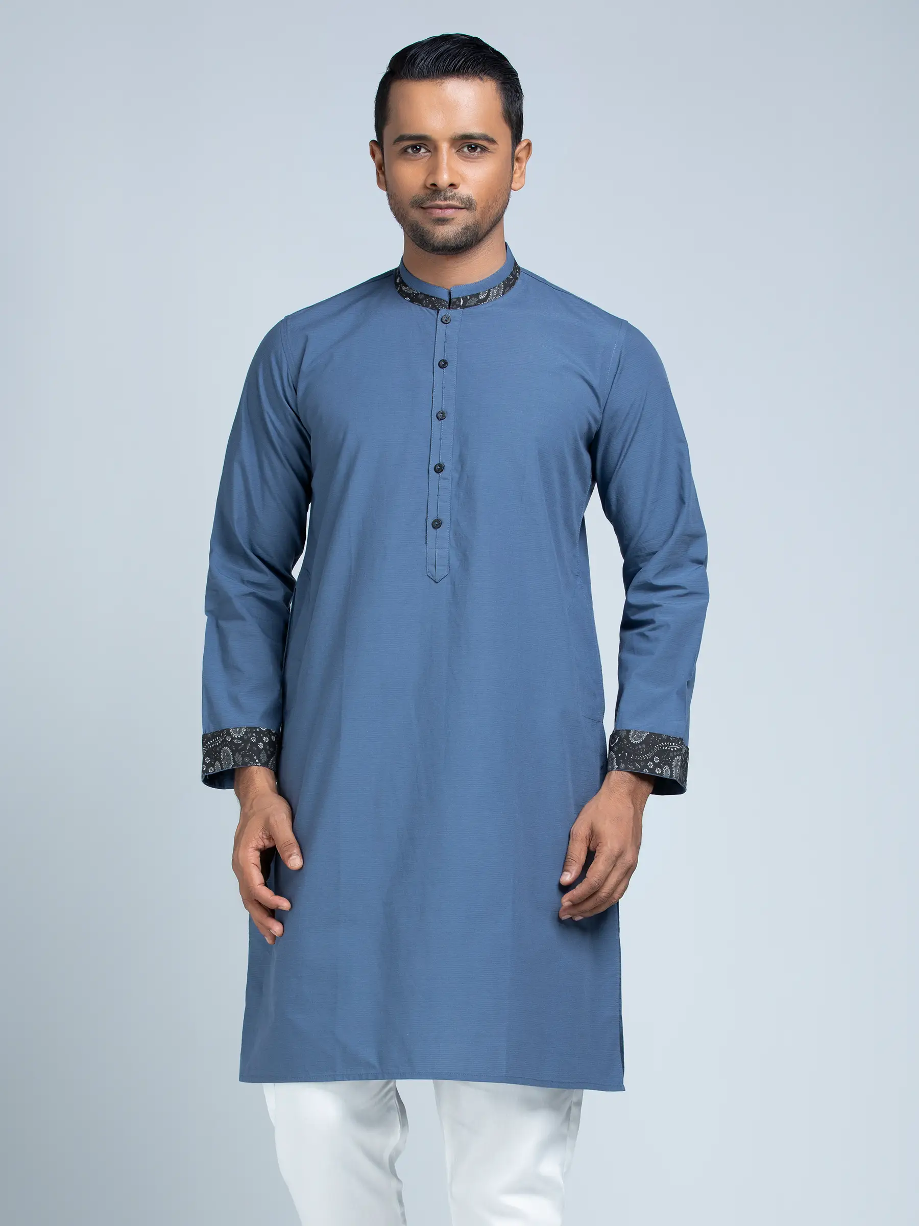 Plum dyed and printed silk saree with grey embroidery details. Comes with matching unstitched blouse piece. Blouse shown in the photo is a styling suggestion, it is not a part of the actual product.